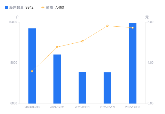 近一年(2024年6月30日至2025年6月30日),科新发展A股股东户数从1.08万户,减低至9942户,降幅7.95%,区间股价上涨258.65%。