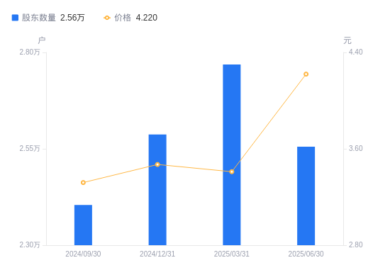近一年(2024年6月30日至2025年6月30日),亚邦股份A股股东户数从2.37万户,增加至2.56万户,增幅7.69%,区间股价上涨86.73%。
