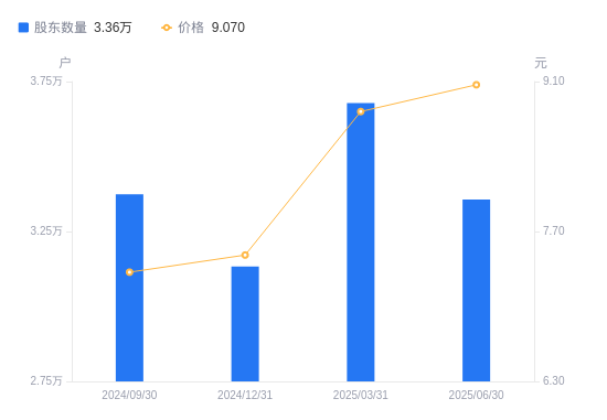 8月28日消息,数据显示,截至2025年6月30日,众业达A股股东总户数为3.36万户,较上期(2025年3月31日)减少3221户,降幅8.76%。公司最新A股总股本为5.45亿股,其中流通A股3.99亿股,户均持有流通A股数量为1.19万股,较上期增加1041.19股,增幅9.60%;户均持流通A股市值10.78万元,较上期增加1.22万元,增幅12.70%。