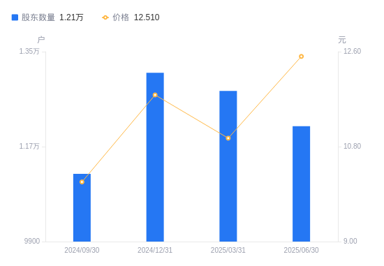 近一年(2024年6月30日至2025年6月30日),南华仪器A股股东户数从1.22万户,减低至1.21万户,降幅1.10%,区间股价上涨52.38%。