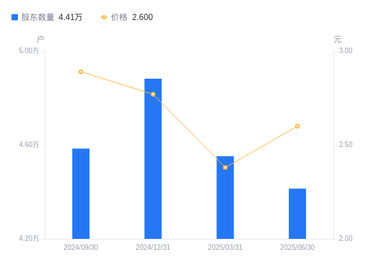 近一年(2024年6月30日至2025年6月30日),财信发展A股股东户数从4.55万户,减低至4.41万户,降幅2.89%,区间股价上涨16.59%。