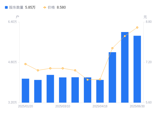 近一年(2024年6月30日至2025年6月30日),中广核技A股股东户数从4.25万户,增加至5.85万户,增幅37.55%,区间股价上涨33.23%。