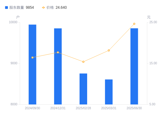 近一年(2024年6月30日至2025年6月30日),通业科技A股股东户数从8103户,增加至9854户,增幅21.61%,区间股价上涨137.59%。