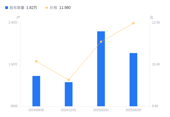 近一年(2024年6月30日至2025年6月30日),宁水集团A股股东户数从1.33万户,增加至1.82万户,增幅36.36%,区间股价上涨30.47%。