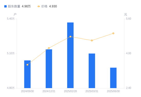 近一年(2024年6月30日至2025年6月30日),晋亿实业A股股东户数从5.08万户,减低至4.98万户,降幅2.00%,区间股价上涨76.07%。
