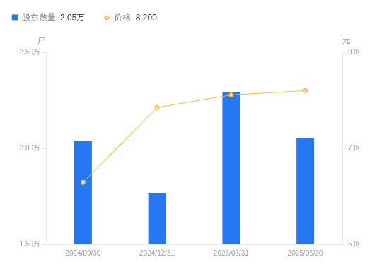 8月28日消息,数据显示,截至2025年6月30日,汉邦高科A股股东总户数为2.05万户,较上期(2025年3月31日)减少2368户,降幅10.34%。公司最新A股总股本为3.86亿股,其中流通A股2.96亿股,户均持有流通A股数量为1.44万股,较上期增加1491.87股,增幅11.53%;户均持流通A股市值11.83万元,较上期增加1.34万元,增幅12.77%。