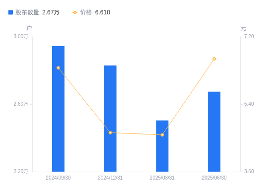 近一年(2024年6月30日至2025年6月30日),莫高股份A股股东户数从2.01万户,增加至2.67万户,增幅33.17%,区间股价上涨68.19%。