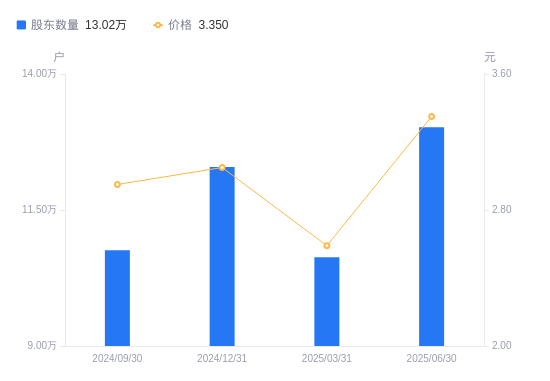 8月28日消息,数据显示,截至2025年6月30日,京运通A股股东总户数为13.02万户,较上期(2025年3月31日)增加2.39万户,增幅22.47%。公司最新A股总股本为24.15亿股,其中流通A股24.15亿股,户均持有流通A股数量为1.85万股,较上期减少4167.44股,降幅18.35%;户均持流通A股市值6.21万元,较上期增加3299.06元,增幅5.61%。