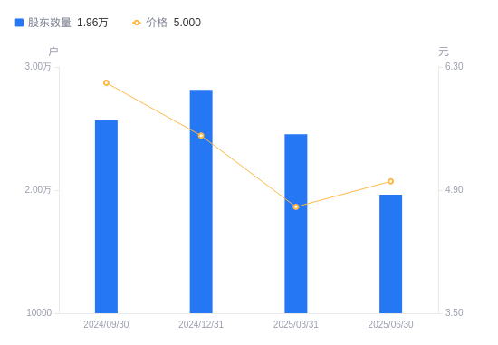 8月28日消息,数据显示,截至2025年6月30日,ST朗源(维权)A股股东总户数为1.96万户,较上期(2025年3月31日)减少4903户,降幅19.98%。公司最新A股总股本为4.71亿股,其中流通A股4.71亿股,户均持有流通A股数量为2.4万股,较上期增加4789.27股,增幅24.97%;户均持流通A股市值11.99万元,较上期增加2.95万元,增幅32.66%。