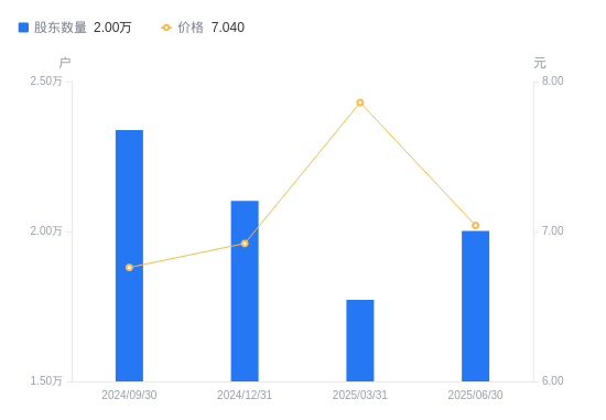 8月28日消息,数据显示,截至2025年6月30日,昇辉科技A股股东总户数为2万户,较上期(2025年3月31日)增加2297户,增幅12.96%。公司最新A股总股本为4.98亿股,其中流通A股3.33亿股,户均持有流通A股数量为1.67万股,较上期减少2158.11股,降幅11.47%;户均持流通A股市值11.72万元,较上期减少3.06万元,降幅20.71%。