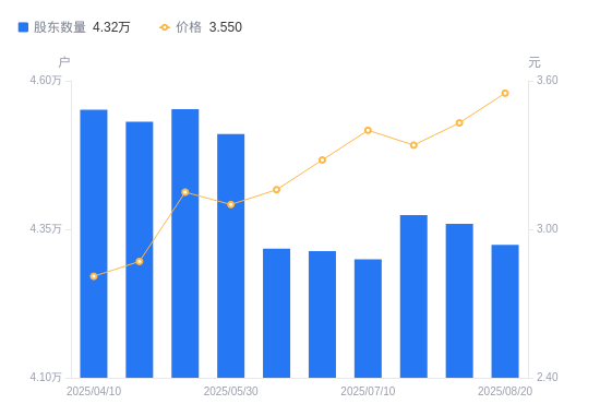 近一年(2024年8月20日至2025年8月20日),阳光照明A股股东户数从3.81万户,增加至4.32万户,增幅13.45%,区间股价上涨37.07%。