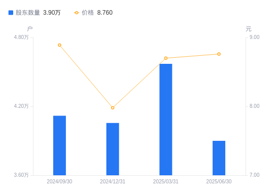 8月28日消息,数据显示,截至2025年6月30日,天威视讯A股股东总户数为3.9万户,较上期(2025年3月31日)减少6701户,降幅14.66%。公司最新A股总股本为8.03亿股,其中流通A股8.03亿股,户均持有流通A股数量为2.06万股,较上期增加3016.78股,增幅17.18%;户均持流通A股市值18.02万元,较上期增加2.75万元,增幅17.99%。