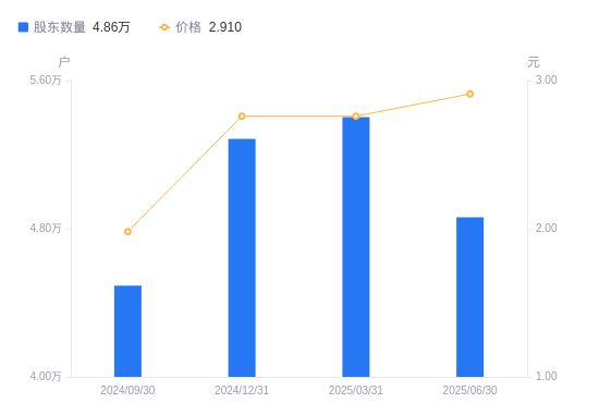 8月28日消息,数据显示,截至2025年6月30日,皓宸医疗A股股东总户数为4.86万户,较上期(2025年3月31日)减少5413户,降幅10.02%。公司最新A股总股本为8.4亿股,其中流通A股8.4亿股,户均持有流通A股数量为1.73万股,较上期增加1731.01股,增幅11.13%;户均持流通A股市值5.03万元,较上期增加7369.24元,增幅17.17%。