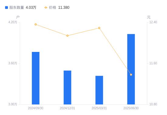 近一年(2024年6月30日至2025年6月30日),惠伦晶体A股股东户数从3.01万户,增加至4.03万户,增幅33.78%,区间股价上涨33.41%。