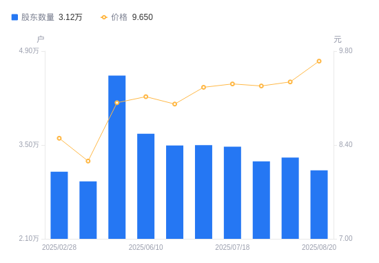 近一年(2024年6月30日至2025年6月30日),三态股份A股股东户数从2.8万户,增加至3.49万户,增幅24.51%,区间股价上涨7.39%。