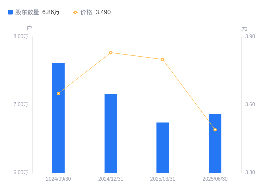 近一年(2024年6月30日至2025年6月30日),福建高速A股股东户数从7.47万户,减低至6.86万户,降幅8.14%,区间股价上涨7.38%。