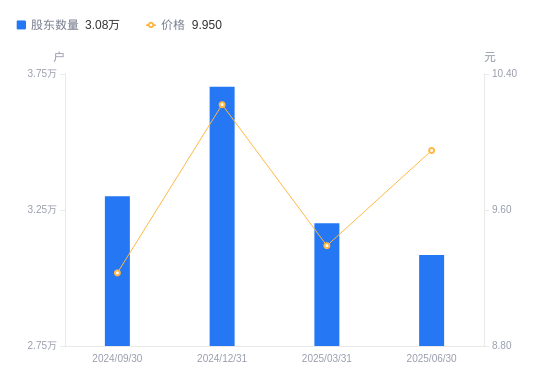 近一年(2024年6月30日至2025年6月30日),上海物贸A股股东户数从3.4万户,减低至3.08万户,降幅9.23%,区间股价上涨27.24%。