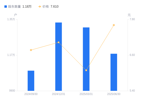 近一年(2024年6月30日至2025年6月30日),全新好A股股东户数从8196户,增加至1.18万户,增幅43.61%,区间股价上涨60.55%。