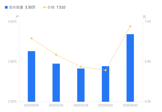 8月29日消息,数据显示,截至2025年6月30日,金陵饭店A股股东总户数为3.35万户,较上期(2025年3月31日)增加6402户,增幅23.61%。公司最新A股总股本为3.9亿股,其中流通A股3.9亿股,户均持有流通A股数量为1.16万股,较上期减少2746.75股,降幅19.10%;户均持流通A股市值8.74万元,较上期减少7972.27元,降幅8.36%。