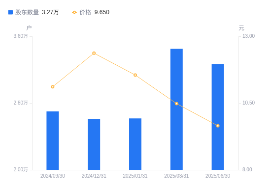 近一年(2024年6月30日至2025年6月30日),安迪苏A股股东户数从2.7万户,增加至3.27万户,增幅21.07%,区间股价上涨2.01%。