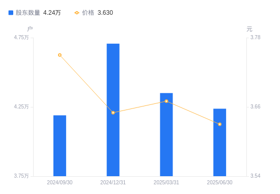 8月29日消息,数据显示,截至2025年6月30日,申达股份A股股东总户数为4.24万户,较上期(2025年3月31日)减少1132户,降幅2.60%。公司最新A股总股本为13.21亿股,其中流通A股11.08亿股,户均持有流通A股数量为2.62万股,较上期增加680.5股,增幅2.67%;户均持流通A股市值9.49万元,较上期增加1451.42元,增幅1.55%。