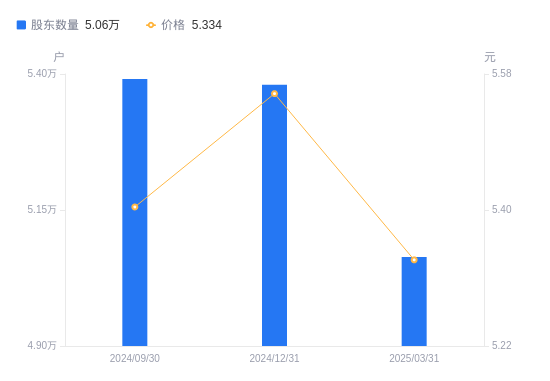 近一年(2024年6月30日至2025年6月30日),重庆路桥A股股东户数从5.37万户,减低至4.69万户,降幅12.74%,区间股价上涨43.76%。