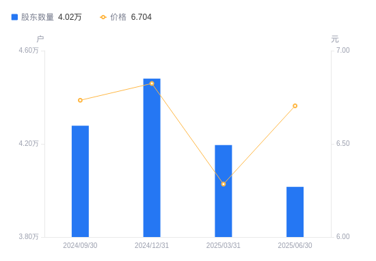 近一年(2024年6月30日至2025年6月30日),南京新百A股股东户数从4.4万户,减低至4.02万户,降幅8.72%,区间股价上涨35.60%。