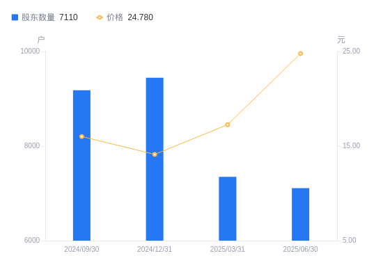 近一年(2024年6月30日至2025年6月30日),康隆达A股股东户数从5082户,增加至7110户,增幅39.91%,区间股价上涨20.88%。