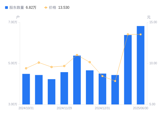 近一年(2024年6月30日至2025年6月30日),贝瑞基因A股股东户数从4.69万户,增加至6.82万户,增幅45.50%,区间股价上涨88.44%。