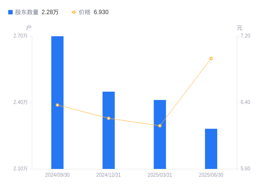 8月29日消息,数据显示,截至2025年6月30日,出版传媒A股股东总户数为2.28万户,较上期(2025年3月31日)减少1302户,降幅5.40%。公司最新A股总股本为5.51亿股,其中流通A股5.51亿股,户均持有流通A股数量为2.41万股,较上期增加1303.73股,增幅5.71%;户均持流通A股市值16.73万元,较上期增加2.75万元,增幅19.70%。