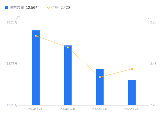 近一年(2024年6月30日至2025年6月30日),海王生物A股股东户数从13.38万户,减低至12.56万户,降幅6.12%,区间股价上涨14.15%。