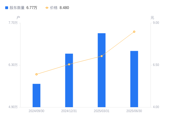 近一年(2024年6月30日至2025年6月30日),四川金顶A股股东户数从6.46万户,增加至6.77万户,增幅4.83%,区间股价上涨62.76%。