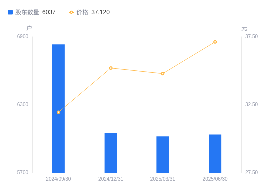 近一年(2024年6月30日至2025年6月30日),扬州金泉A股股东户数从7109户,减低至6037户,降幅15.08%,区间股价上涨21.94%。