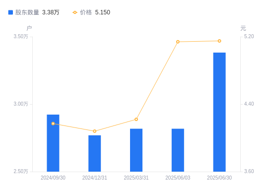 近一年(2024年6月30日至2025年6月30日),廊坊发展A股股东户数从3.01万户,增加至3.38万户,增幅12.39%,区间股价上涨59.94%。