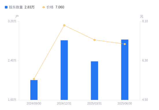 近一年(2024年6月30日至2025年6月30日),渤海股份A股股东户数从1.87万户,增加至2.83万户,增幅51.53%,区间股价上涨53.81%。