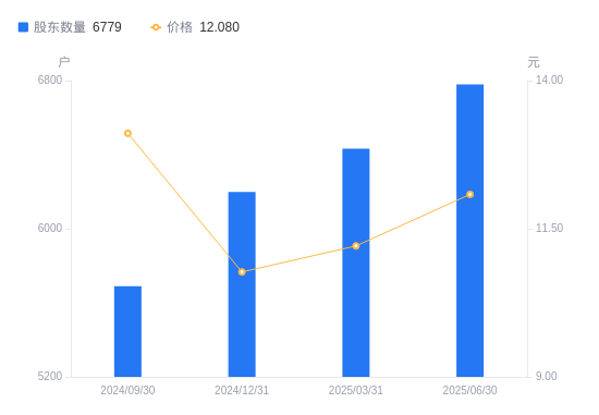 近一年(2024年6月30日至2025年6月30日),卓然股份A股股东户数从5848户,增加至6779户,增幅15.92%,区间股价上涨0.50%。