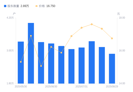 近一年(2024年9月30日至2025年8月29日),冠昊生物A股股东户数从3.33万户,减低至2.89万户,降幅13.24%,区间股价上涨49.29%。