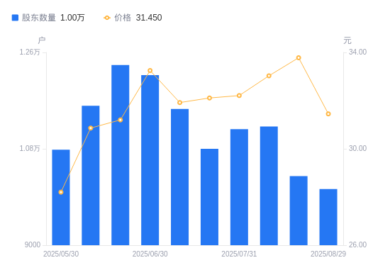 近一年(2024年8月30日至2025年8月29日),争光股份A股股东户数从1.24万户,减低至1万户,降幅18.69%,区间股价上涨53.48%。
