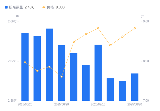 近一年(2024年7月31日至2025年7月31日),海天股份A股股东户数从2.68万户,减低至2.46万户,降幅8.25%,区间股价上涨45.83%。
