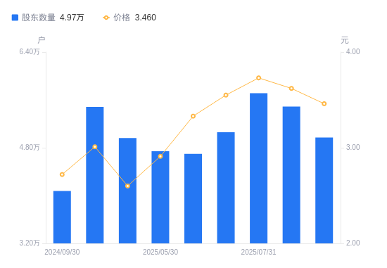 近一年(2024年9月30日至2025年8月29日),重庆建工A股股东户数从4.08万户,增加至4.97万户,增幅21.95%,区间股价上涨37.85%。