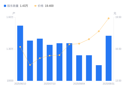 近一年(2024年9月10日至2025年8月31日),久祺股份A股股东户数从1.12万户,增加至1.43万户,增幅27.29%,区间股价上涨113.19%。