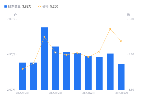 近一年(2024年9月20日至2025年8月29日),宝莫股份A股股东户数从4.06万户,减低至3.82万户,降幅6.02%,区间股价上涨47.89%。