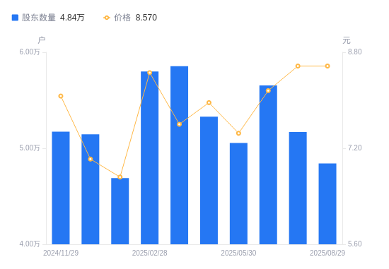 近一年(2024年8月30日至2025年8月29日),华宇软件A股股东户数从3.77万户,增加至4.84万户,增幅28.57%,区间股价上涨93.89%。
