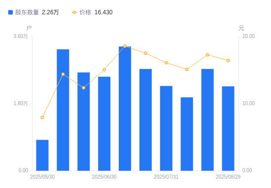 9月2日消息,数据显示,截至2025年8月29日,金时科技A股股东总户数为2.26万户,较上期(2025年8月20日)减少4640户,降幅17.01%。公司最新A股总股本为4.05亿股,其中流通A股4.05亿股,户均持有流通A股数量为1.79万股,较上期增加3041.89股,增幅20.49%;户均持流通A股市值29.39万元,较上期增加3.75万元,增幅14.63%。
