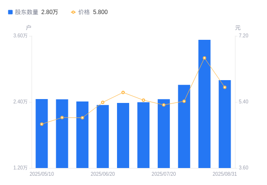近一年(2024年9月10日至2025年8月31日),凯恩股份A股股东户数从3.01万户,减低至2.8万户,降幅7.12%,区间股价上涨70.79%。