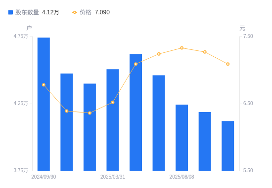 近一年(2024年9月30日至2025年8月29日),新农开发A股股东户数从4.74万户,减低至4.12万户,降幅13.10%,区间股价上涨12.01%。