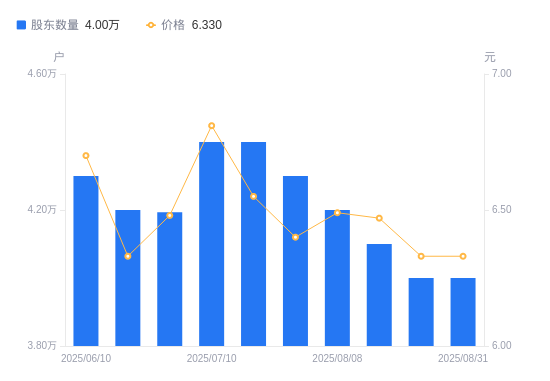 近一年(2024年8月30日至2025年8月30日),大连热电A股股东户数从4.66万户,减低至4万户,降幅14.16%,区间股价上涨26.85%。