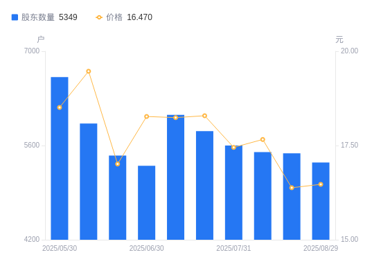 近一年(2024年8月30日至2025年8月29日),*ST和科A股股东户数从4659户,增加至5349户,增幅14.81%,区间股价上涨121.97%。