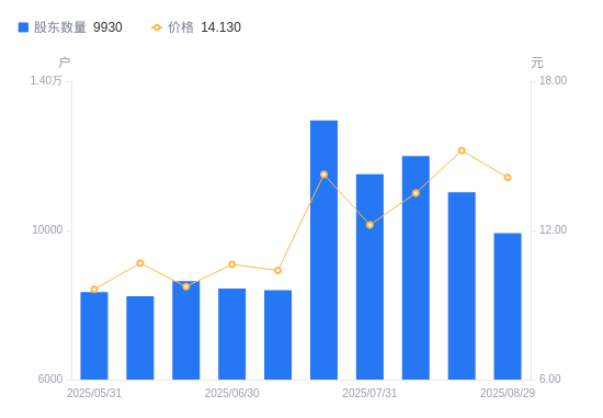 近一年(2024年8月30日至2025年8月29日),博汇股份A股股东户数从1.04万户,减低至9930户,降幅4.93%,区间股价上涨134.33%。