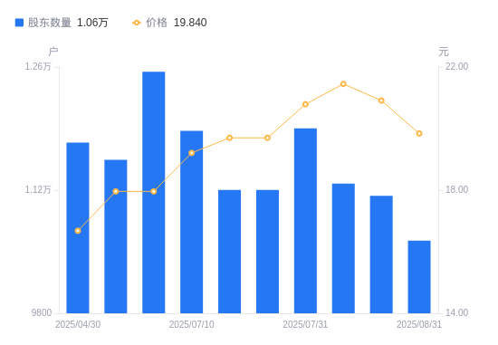 近一年(2024年9月10日至2025年8月31日),东亚药业A股股东户数从1.05万户,增加至1.06万户,增幅1.03%,区间股价上涨15.08%。
